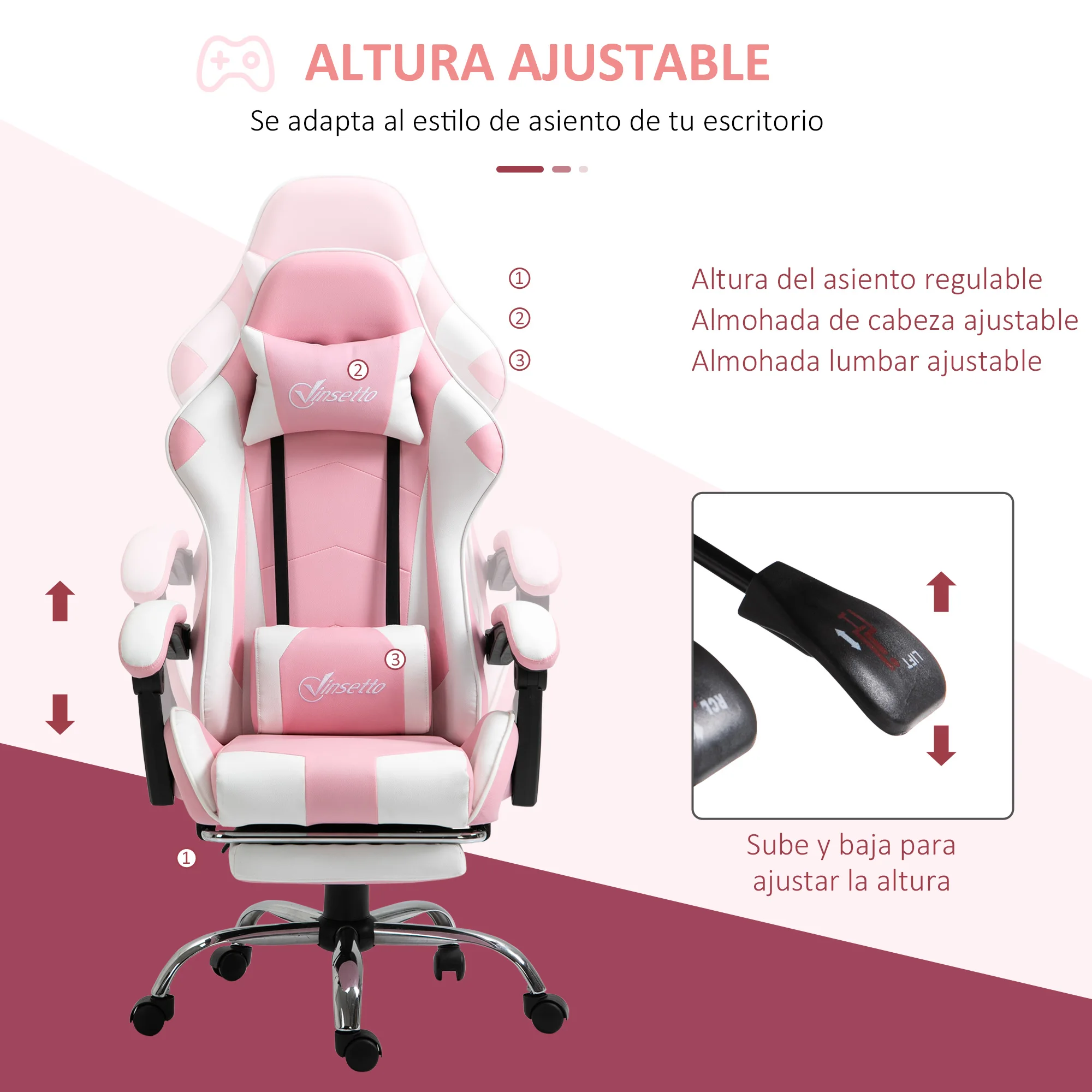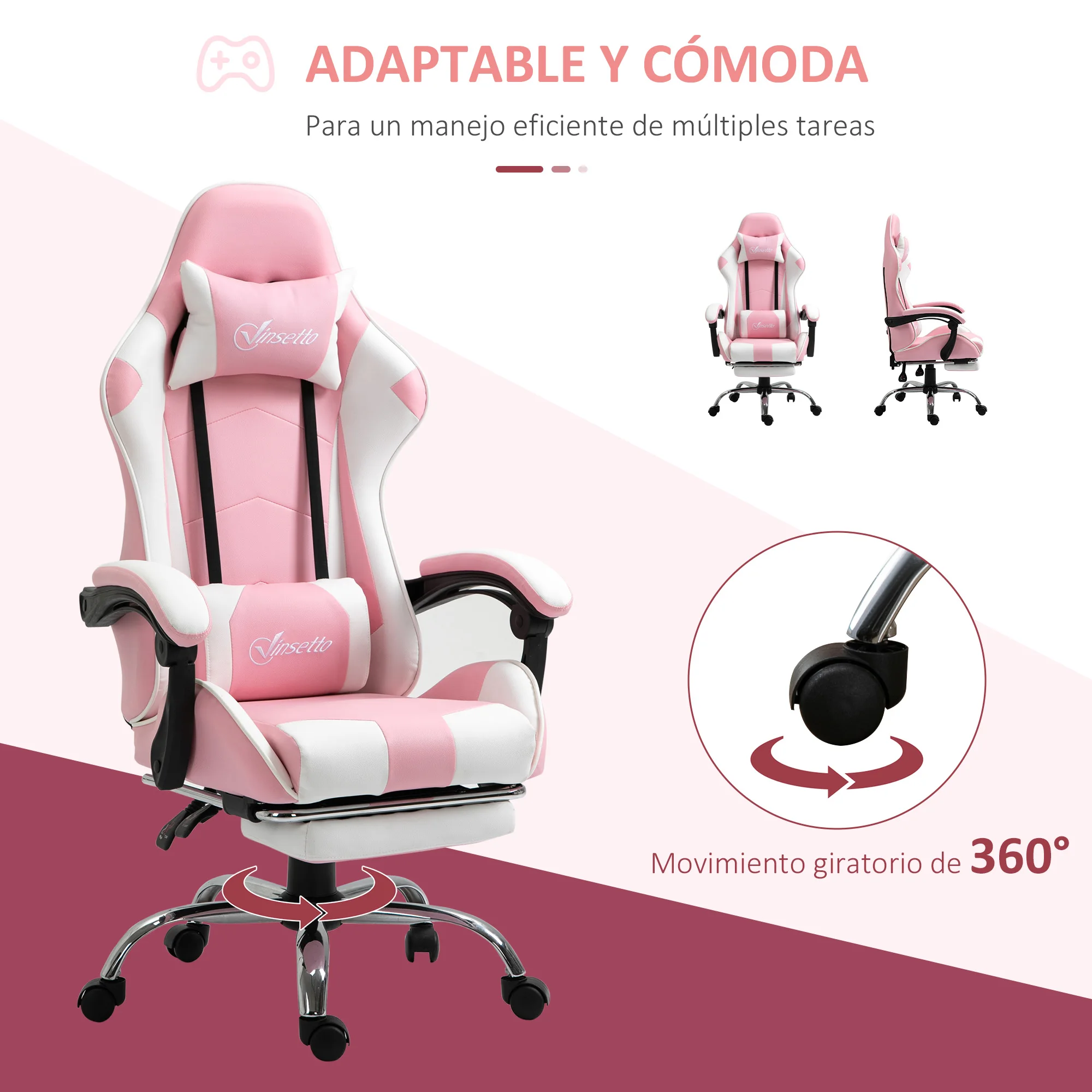 Vinsetto Reclining Gaming Chair Headrest Footrest 64X67X119-127 cm Pink
